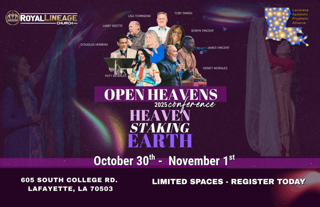 Open Heavens is our annual conference held at Royal Lineage Church in Lafayette, Louisiana.